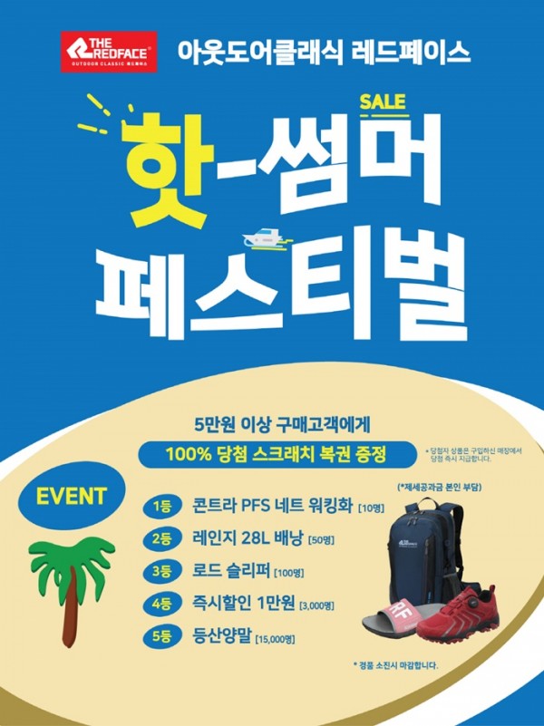 아웃도어 브랜드 ‘레드페이스’가 7월부터 본격적인 여름을 맞이해 전국 레드페이스 매장에서 ‘핫-썸머 페스티벌’ 이벤트를 실시한다.
