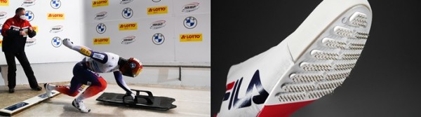 휠라 스켈레톤화를 신은 윤성빈 경기장면(왼쪽), 휠라 스켈레톤화.